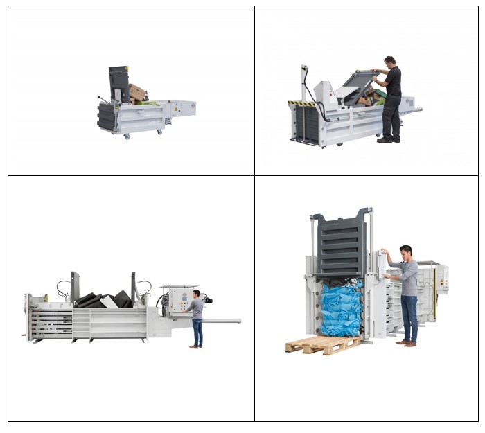 La versátil prensa de balas móvil, prensa láminas y material de embalaje ligero en el lugar donde se generan los desechos.